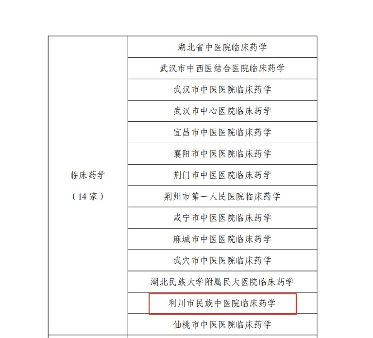 日前,湖北省中医药管理局公布《关于“十四五”湖北省三级医院中医重点专科(第三批)评审结果的公示》,利川市民族中医院临床药学成功通过审批,获评湖北省三级医院中医重点专科。
